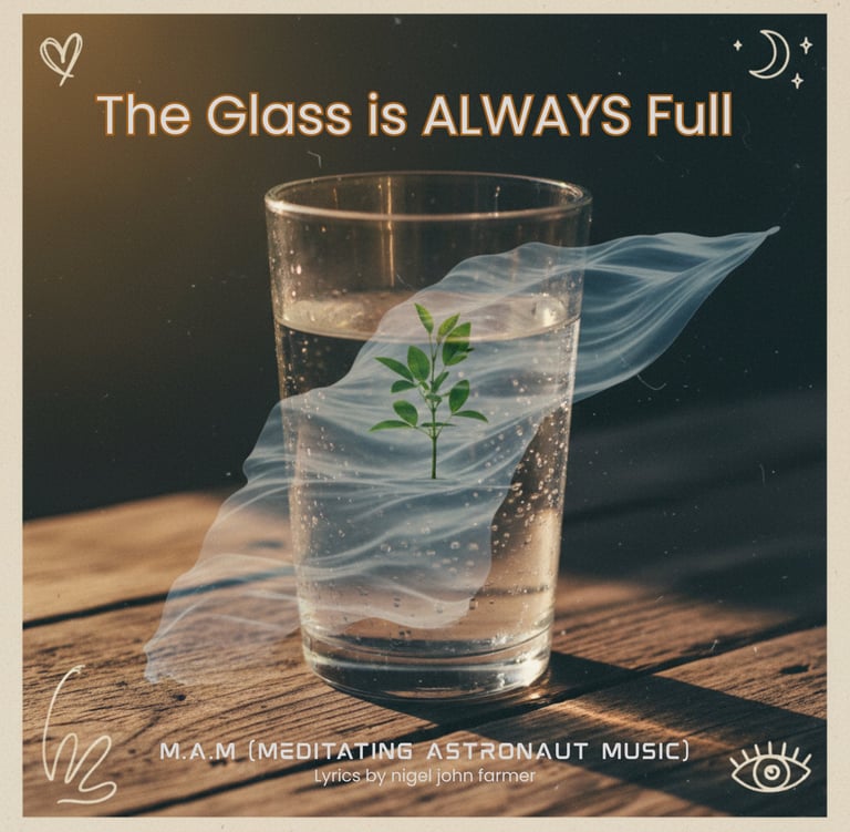 "The Glass is ALWAYS Full" is far more than a simple optimistic tune; it is a sophisticated and practical guide for courageous engagement with a complicated world. Farmer’s ultimate thesis is that authentic hope is not a passive denial of reality, but an active, courageous form of engagement. By combining a realistic acknowledgment of global challenges with a commitment to small, meaningful efforts and mindful grounding, Nigel John Farmer provides a blueprint for a resilient and active optimism. The ultimate lesson is that the glass of our reality is indeed always full—filled with both darkness and light, challenge and opportunity—and our greatest power lies in choosing where to focus our energy and our hearts. - premiumlyrics.com